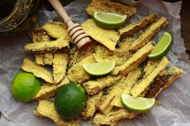 Aubergine polenta chips with lime and honey