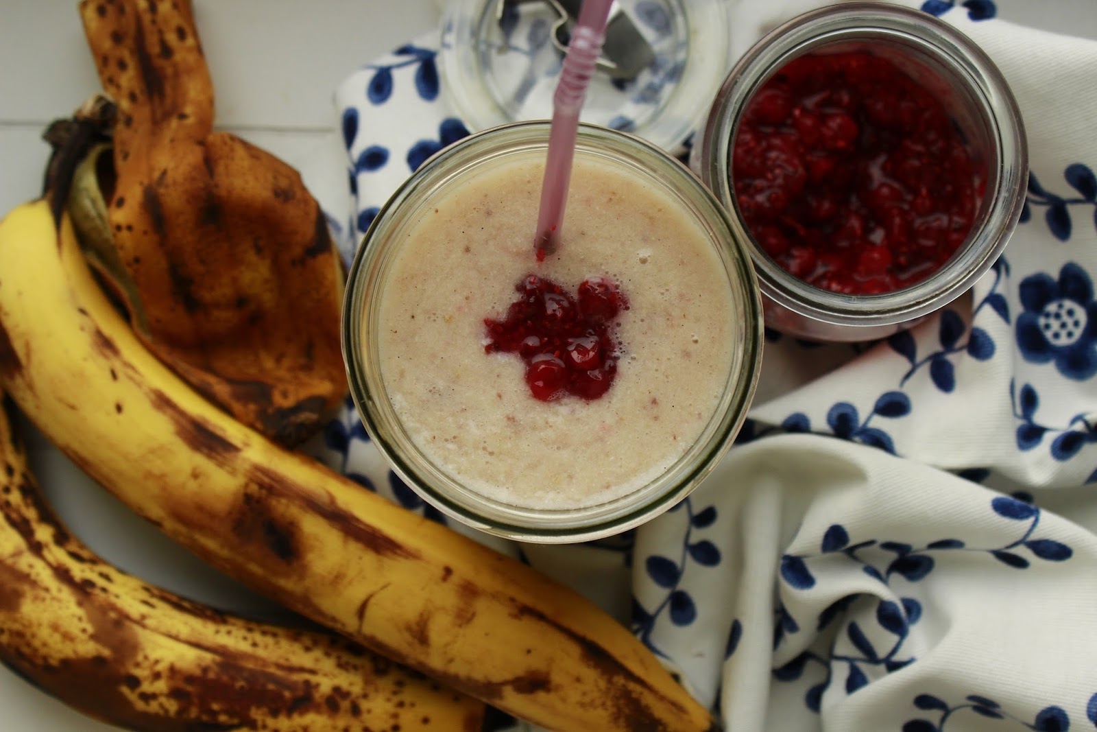 Then blend banana with peanut butter, almond milk, flax seeds, chia jam and vanilla extract unitl smooth. You could add few ice cubes. Serve immediately.